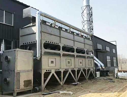 在化學(xué)反應(yīng)過程中,利用催化劑降低燃燒溫度,加速有毒有害氣體完全氧化的方法,叫做催化燃燒法。由于催化劑的載體是由多孔材料制作的,具有較大的比表面積和合適的孔徑,當(dāng)加熱到300~450℃的有機(jī)氣體通過催化層時(shí),氧和有機(jī)氣體被吸附在多孔材料表層的催化劑上,增加了氧和有機(jī)氣體接觸碰撞的機(jī)會(huì),提高了活性,使有機(jī)氣體與氧產(chǎn)生劇烈的化學(xué)反應(yīng)而生成CO2和H2O,同時(shí)產(chǎn)生熱量,從而使得有機(jī)氣體變成無毒無害氣體。